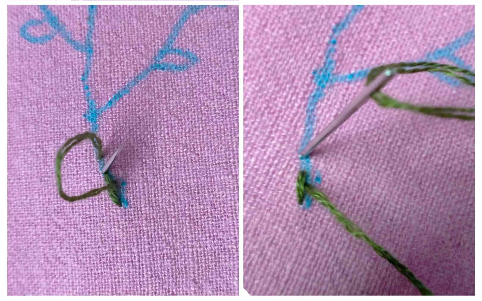 2. Start a new stitch in the middle of the loop. Pull the thread carefully.