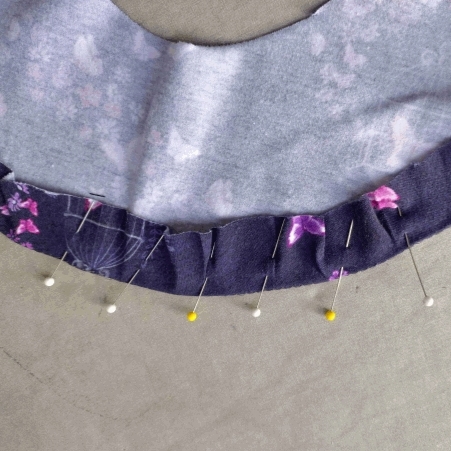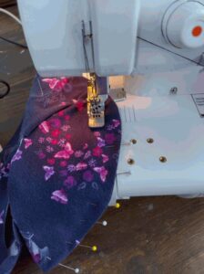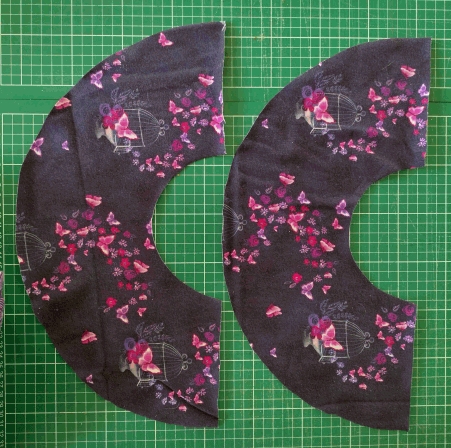 Start with cutting out the pattern pieces. The amount of pattern pieces depends on the pattern. Here in the picture the circle skirt is made out of two pieces that we sew together.