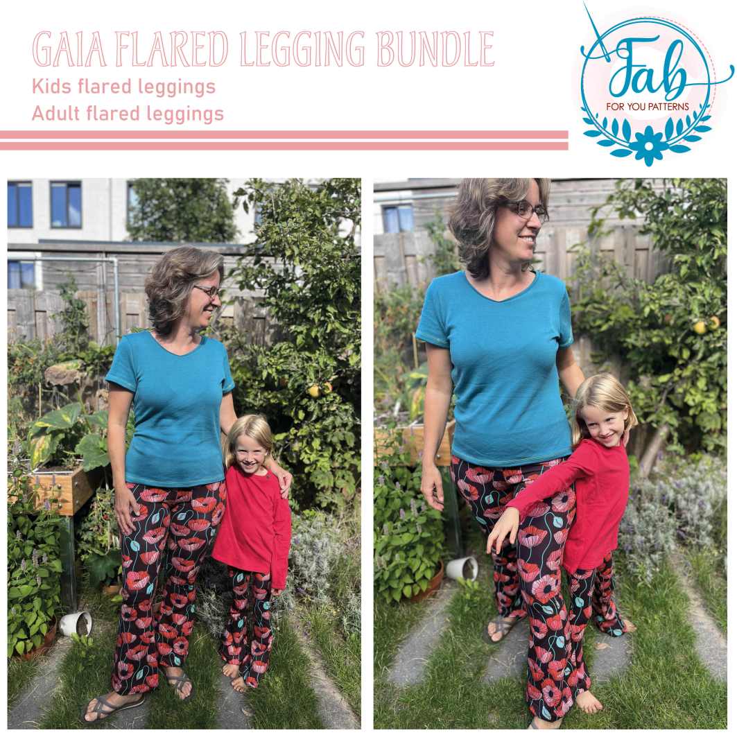 The Gaia Flared Leggings bundle is suitable for beginning sewists. Whether you’re making the adult or the kids version, the instructions will provide clear and step by step help to be able to create a fun flared pants. Even if this is your first sewing project.