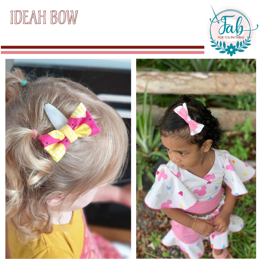The Ideah Bow is a bow with an option for a single or a double bow. The bow can be used for multiple purposes, like a bow tie, bow on a legging, hair accessoires. The seam allowance is included. With the code in our Facebook group, you can download this pattern for free.