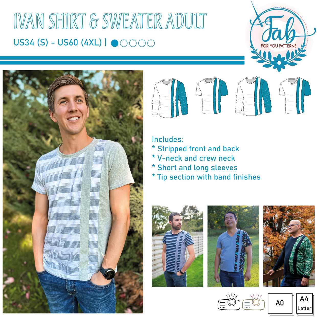 The Ivan Shirt and Sweater is completely interchangeable with the Ezra Shirt and Sweater. This makes it possible to create a true basic shirt without colorblocks, a completely colorblocked shirt and everything in between.