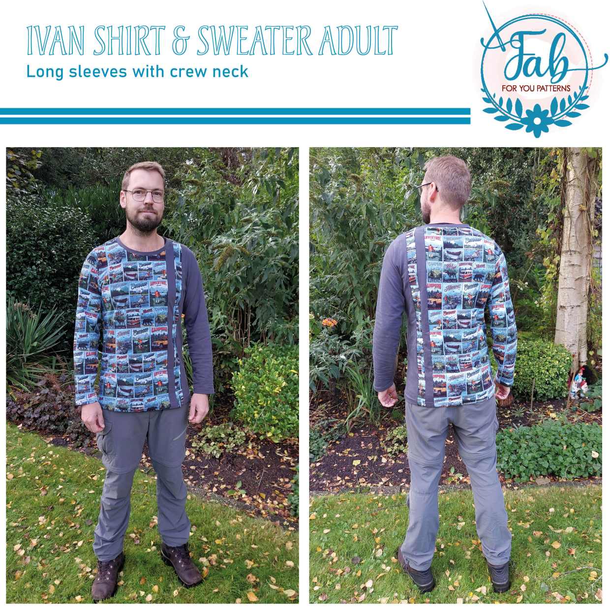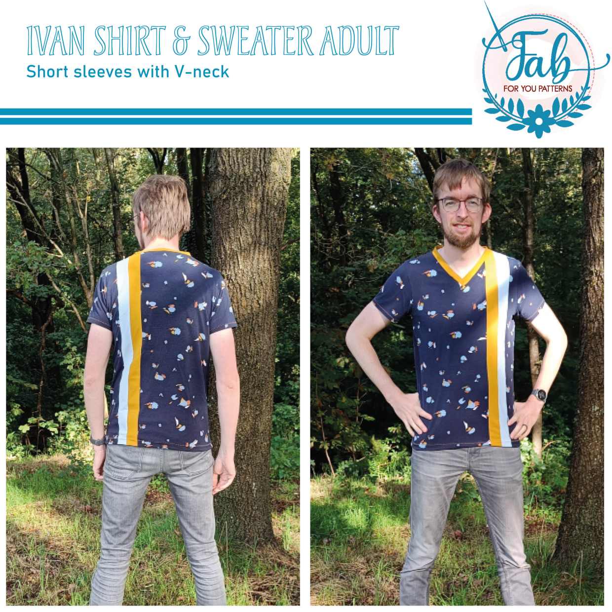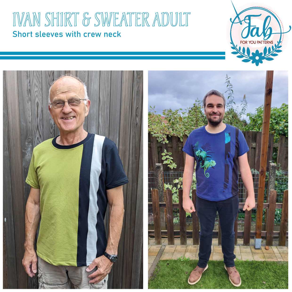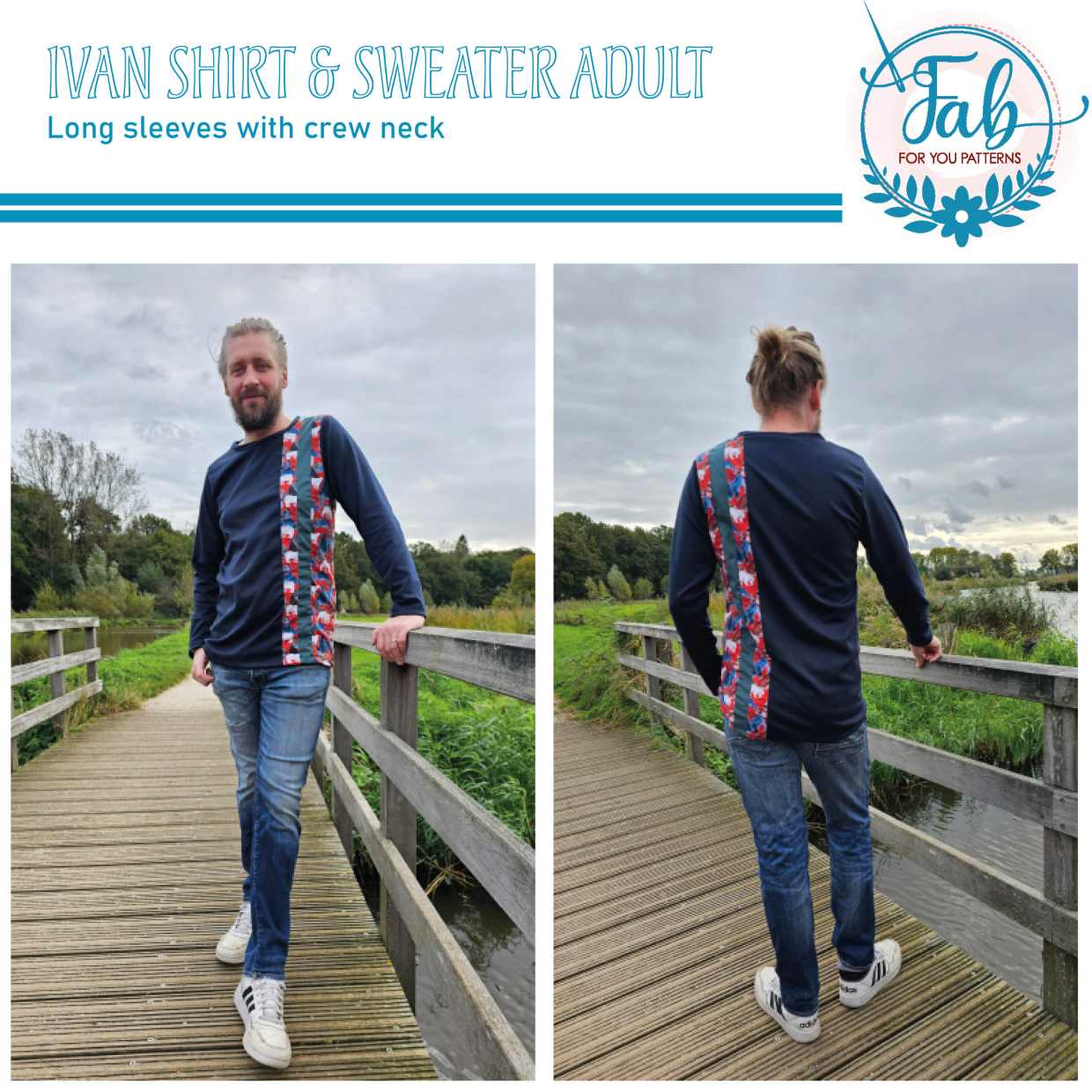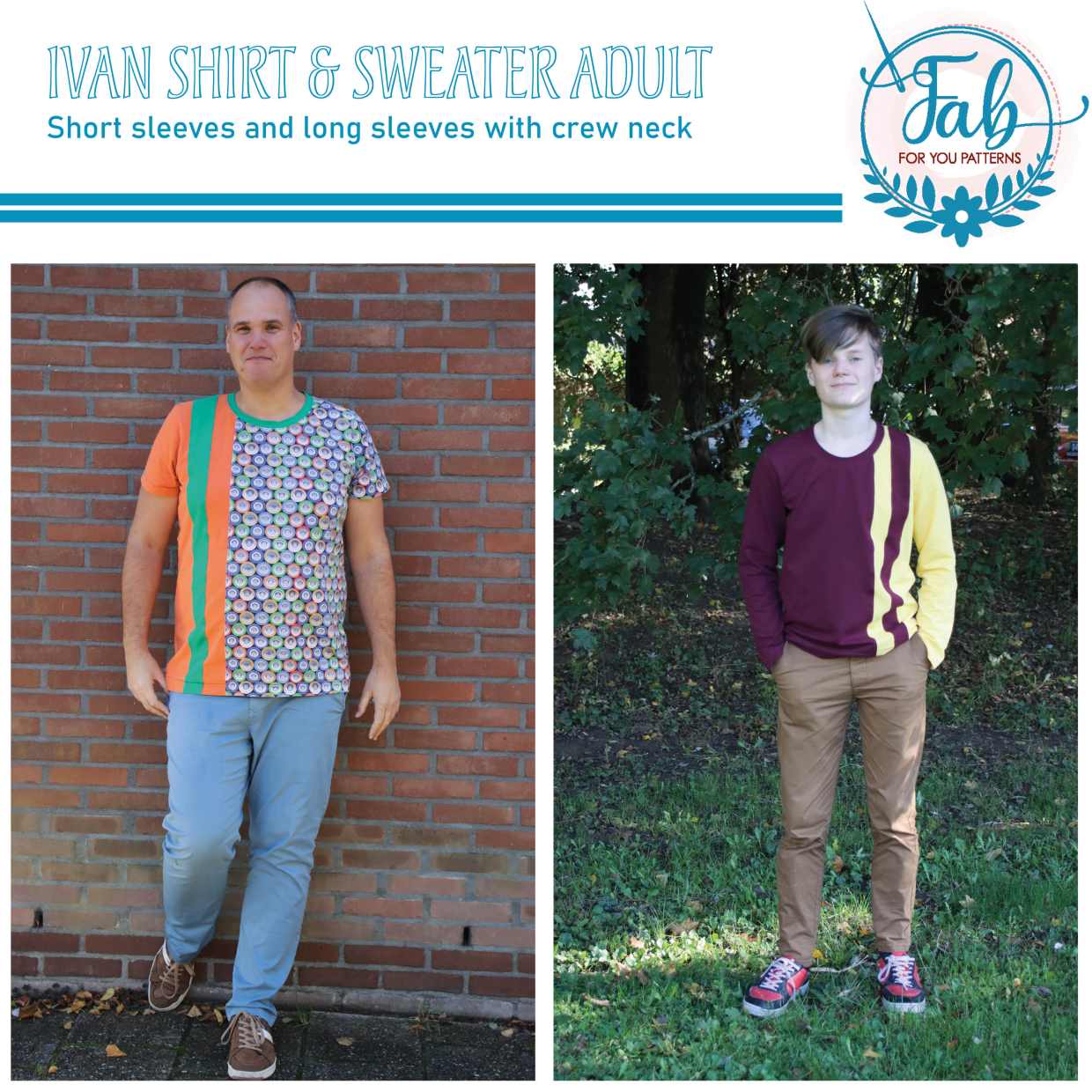 The Ivan Shirt and Sweater adult is a sewing pattern to create a stylish shirt or Sweater for grownups with the awesome colorblocks that resemble the colorblocks of the Vernon cardigan. Ivan has a basic crew neck and a more challenging sharp v-neck. Ivan also has two sleeve lengths and options like extra waist and arm bands to create a sweater. It has a unisex fit, so it’s suitable for everyone. As with all Fab For You Patterns, the instructions of the Ivan pattern also include an inspiring tip section to make even more variations.