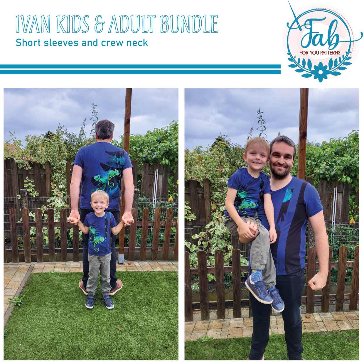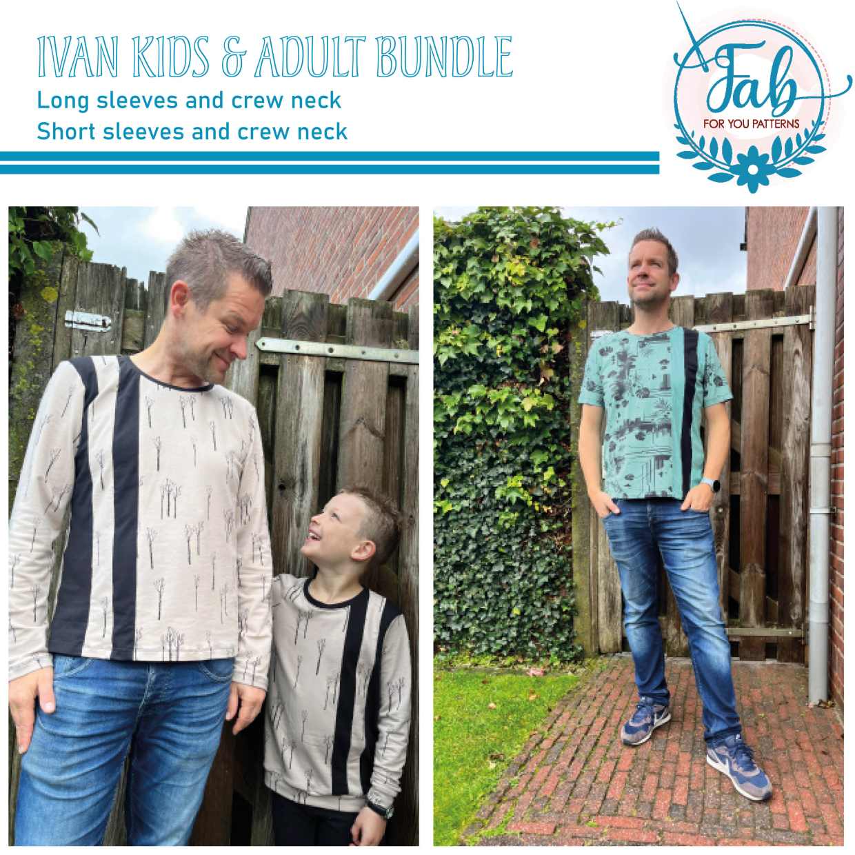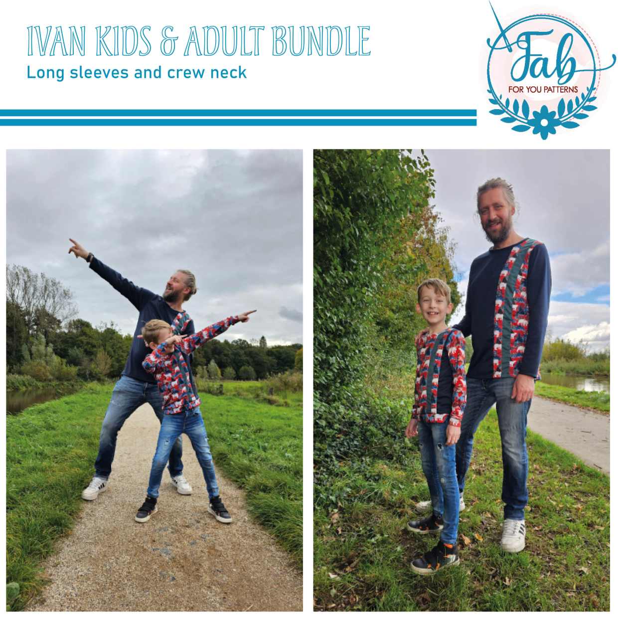 This bundle contains the Ivan kids and Ivan Adult. The Ivan kids runs from size NB/50 to 16Y/176. The Ivan Adult runs from size US 34 to US 60.