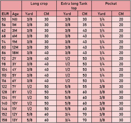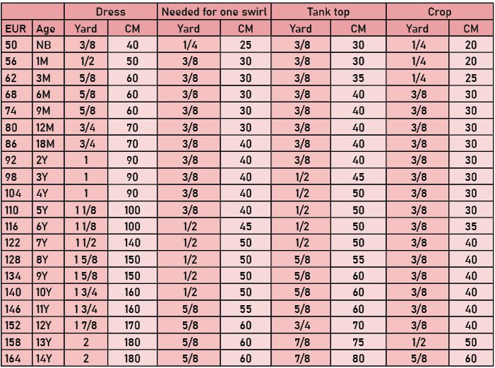 Jolynne has been designed according to the pink kids size chart. The pattern runs from size newborn (50) up to size 14y (164). Always measure your model and use trunk and inseam measurements to choose the correct length.