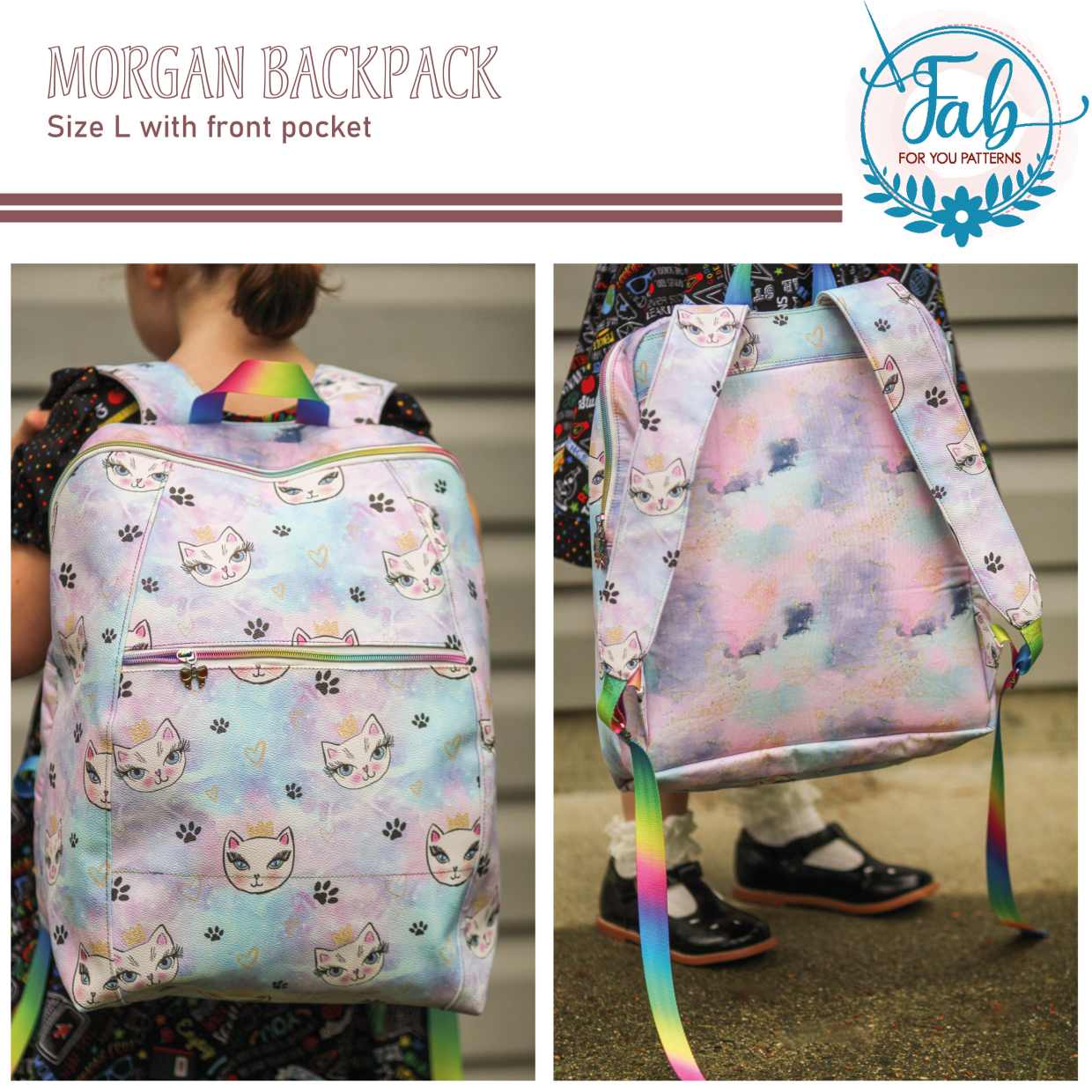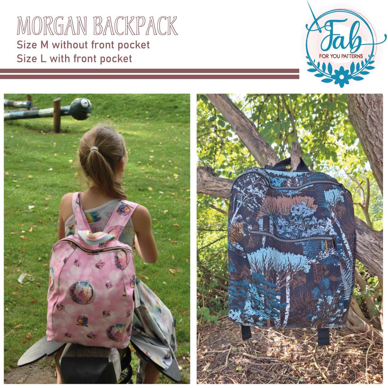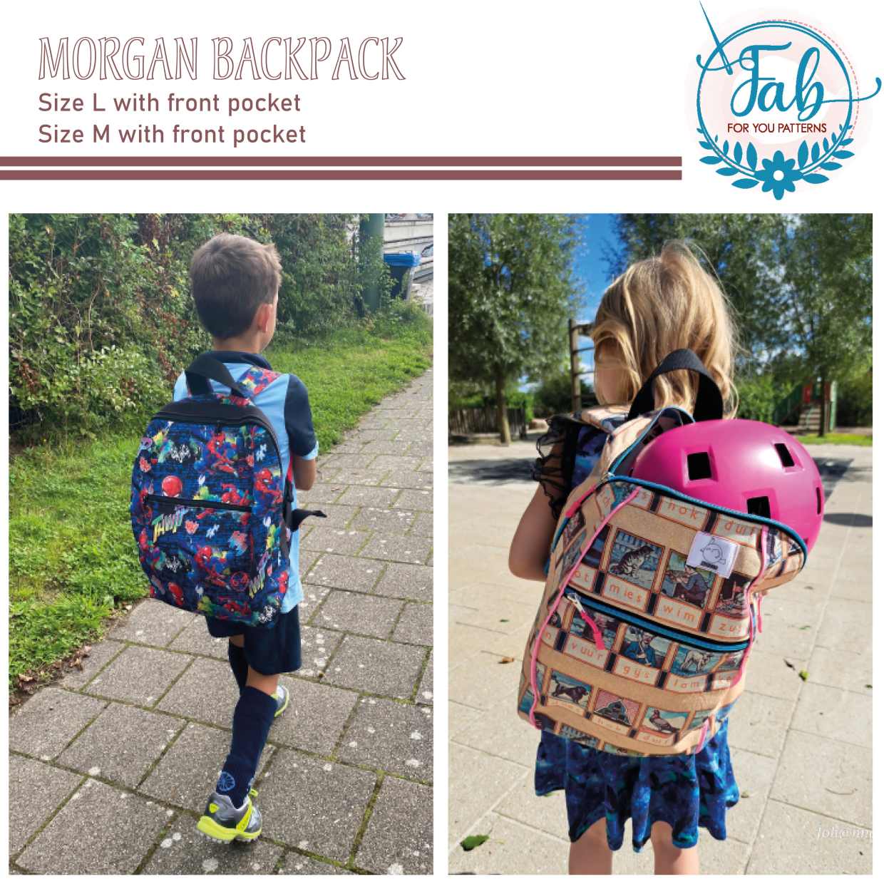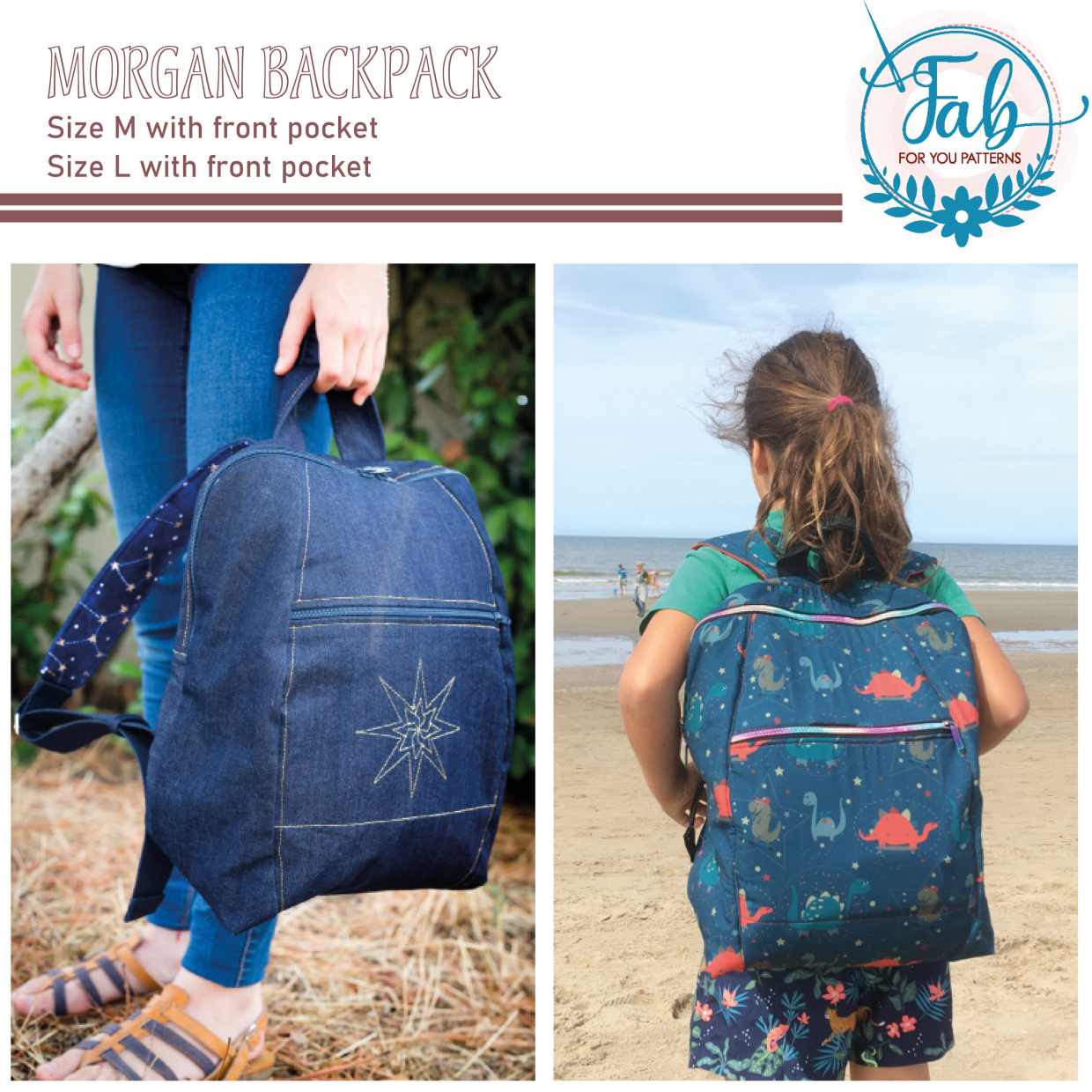 The Morgan is a fun and stylish backpack pattern with a practical front pocket and even more practical features on the inside. Morgan is available in 3 sizes: small, medium and large. Keep in mind that the Morgan backpack is slightly bigger than the Paco Backpack, but smaller than the Logan Backpack. As with all Fab For You Patterns, the instructions of the Morgan backpack pattern also include an inspiring tip section with some awesome ideas.