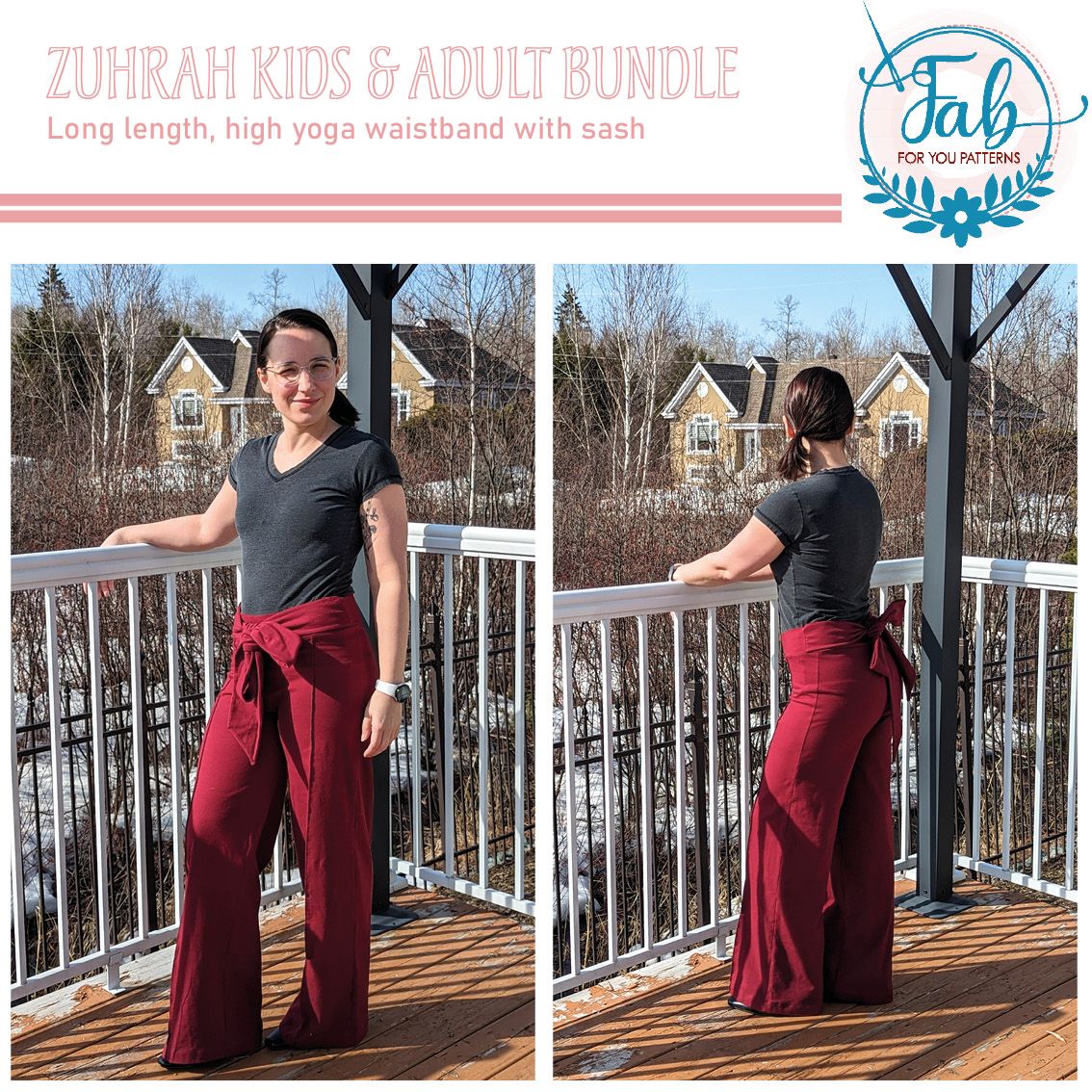 For either the Zuhrah wide leg pants kids or adult, we advise to use medium weight knit fabrics with at least 30% stretch like: cotton lycra, jersey, interlock or French terry. Keep in mind that you might need to size up if you choose to use a thicker fabric or a fabric type with less stretch than recommended.